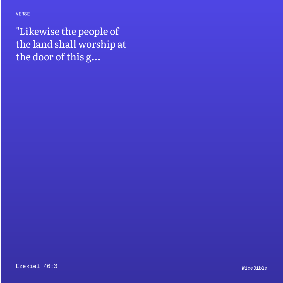 This verse from Ezekiel Chapter 46 connects to 4 cross-references. Regulations for the prince's worship: the eastern gate is to be opened on sabbaths and new moons for the prince's offering. The people worship at the threshold; the prince enters and exits ceremonially. Directions for daily offerings, the cooking and …