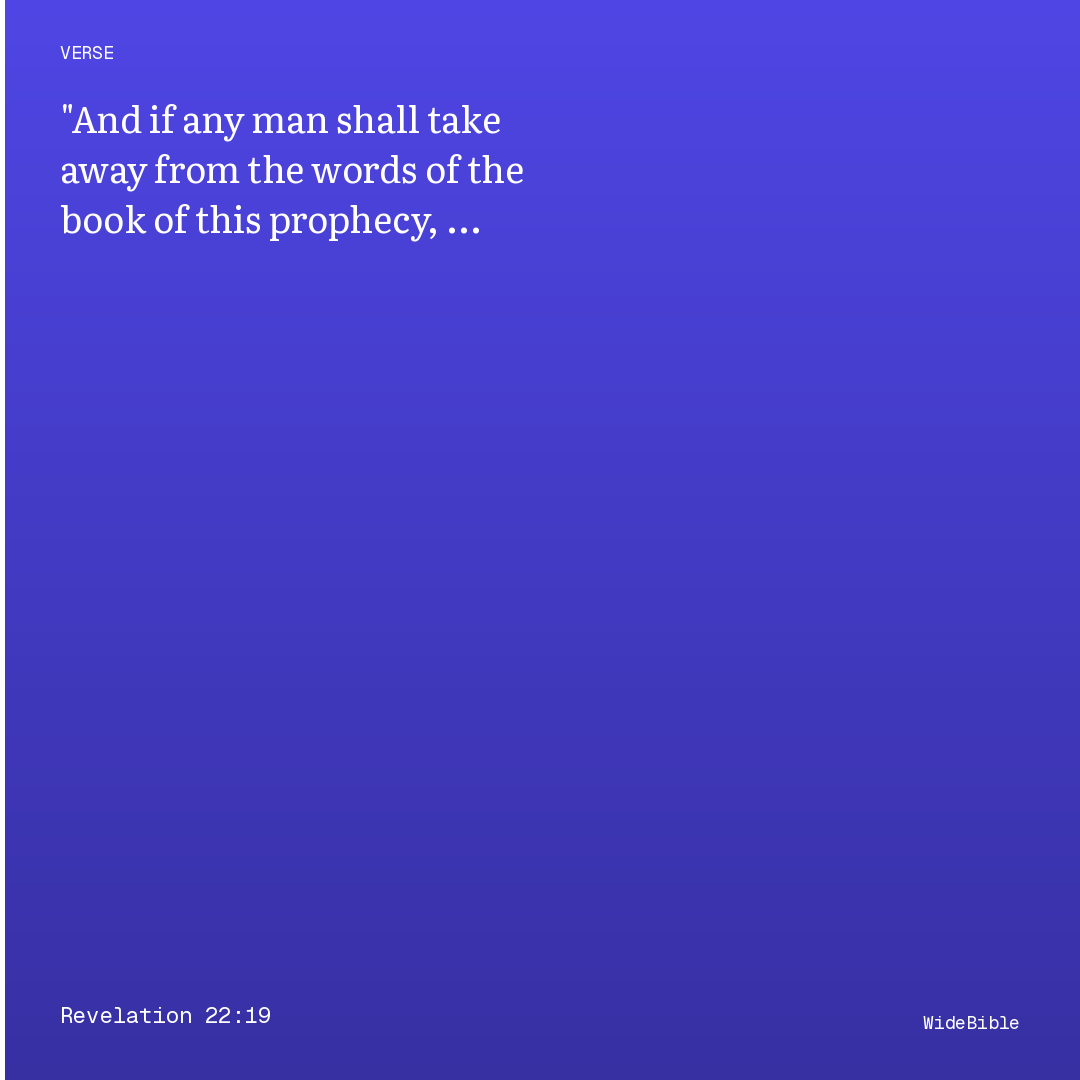 And if any man shall take away from the words of the book of this prophecy, God shall take away his part out of the book of life, and out of the holy city, and from the things which are written in this book.