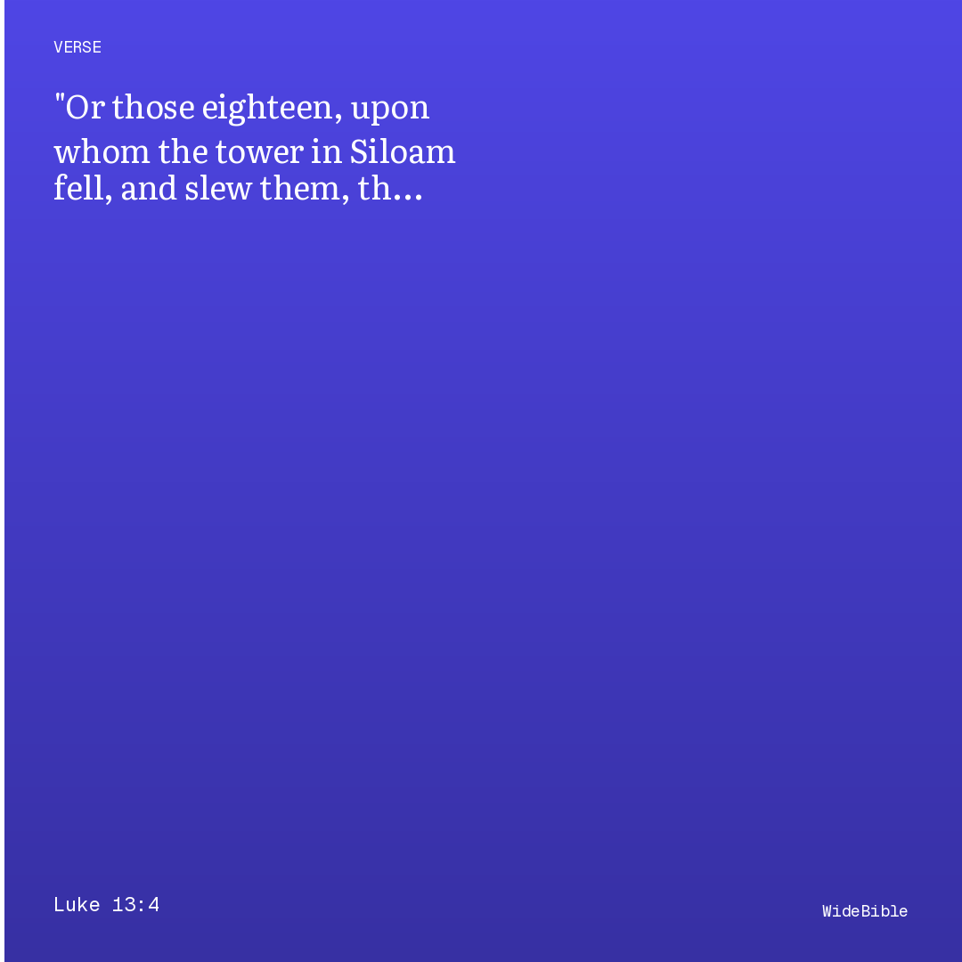 Or those eighteen, upon whom the tower in Siloam fell, and killed them, think ye that they were offenders above all the men that dwell in Jerusalem?