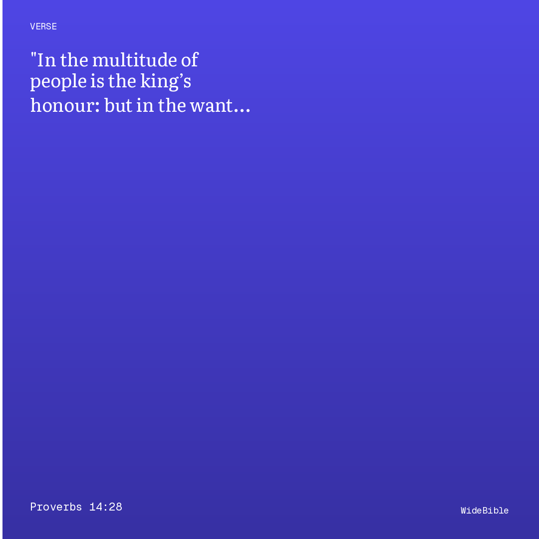 In the multitude of people is the king’s honour: but in the want of people is the destruction of the prince.