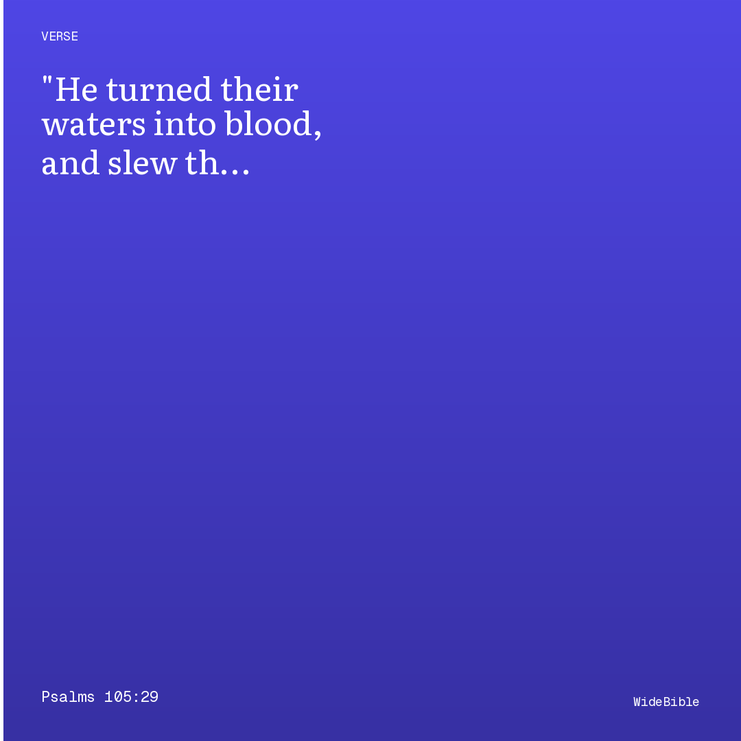 This verse from Psalms Chapter 105 connects to 7 cross-references. A historical psalm retelling Israel's story from Abraham's covenant through the Exodus and wilderness journey, emphasizing God's faithfulness to his covenant promises. The plagues are rehearsed in detail and the psalm ends with the arrival in the promised land, urging …