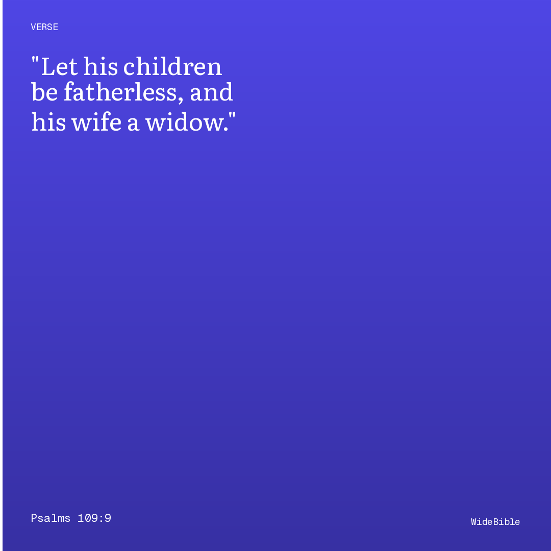 This verse from Psalms Chapter 109 connects to 3 cross-references. A lament of David against a vicious adversary who persecutes him with lies and repays evil for good. The notorious imprecatory section asks for the accuser's condemnation, shortened life, fatherless children, and wandering poverty. David appeals to God's steadfast love …