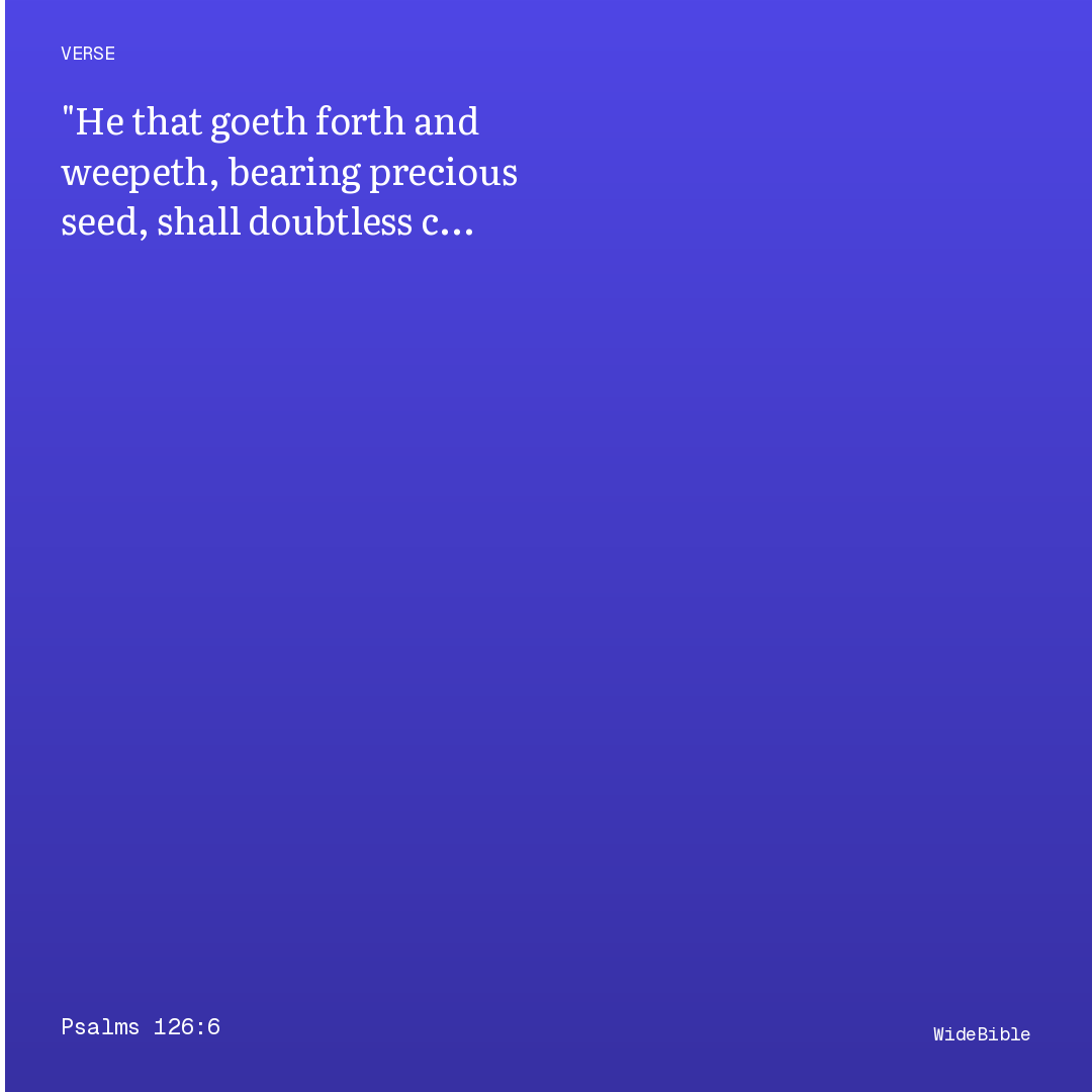 He that goeth forth and weepeth, bearing seed for sowing, Shall doubtless come again with joy, bringing his sheaves with him.