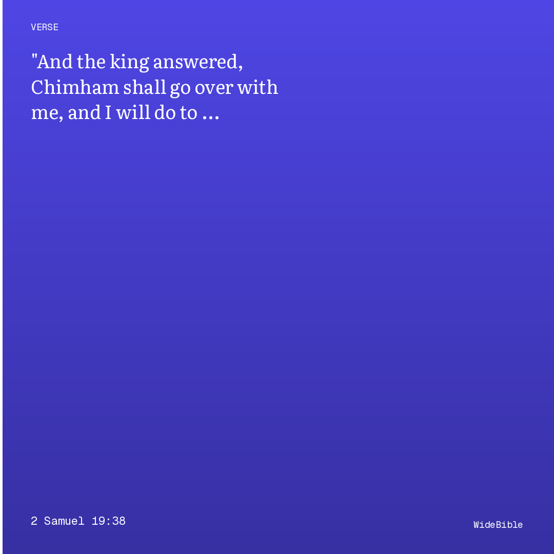 And the king answered, Chimham shall go over with me, and I will do to him that which shall seem good unto thee: and whatsoever thou shalt require of me, that will I do for thee.