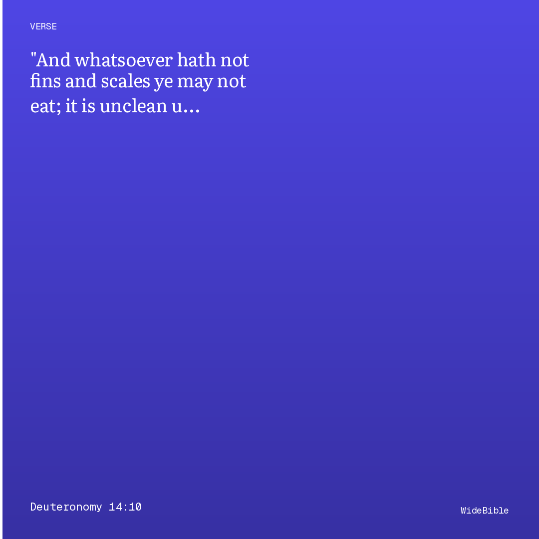 This verse from Deuteronomy Chapter 14 connects to 0 cross-references. Distinctions between Israel and the nations include prohibited mourning practices—cutting the body or shaving the head. Clean and unclean animals are listed, similar to Leviticus 11, identifying animals permitted and forbidden for food. A tithe of agricultural produce is to …