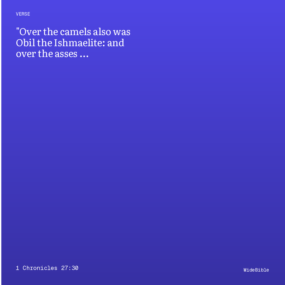 Over the camels also was Obil the Ishmaelite: and over the asses was Jehdeiah the Meronothite: