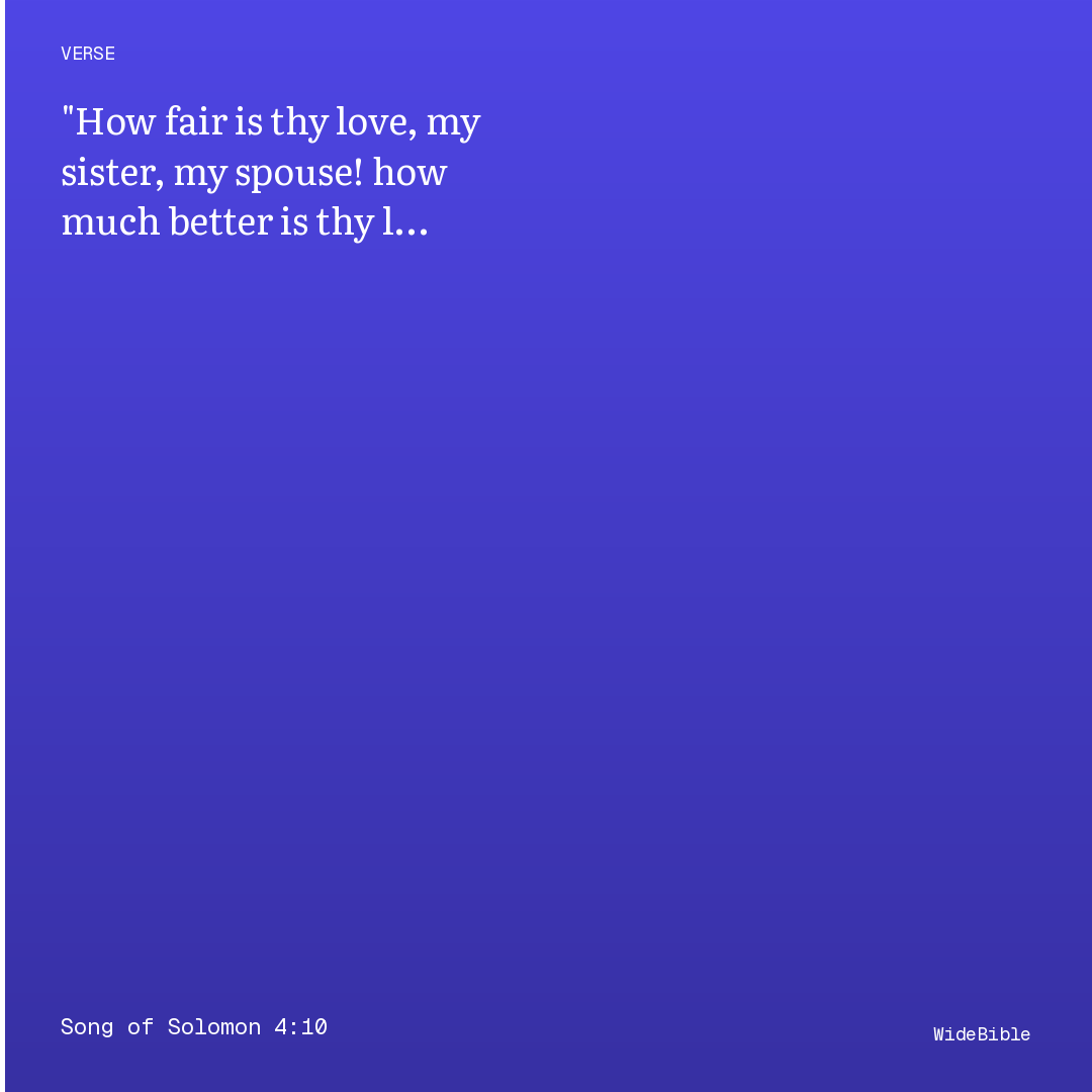 How fair is thy love, my sister, my bride! How much better is thy love than wine! And the fragrance of thine oils than all manner of spices!
