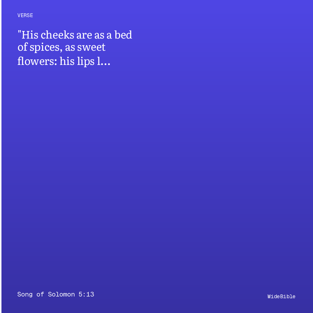 His cheeks are as a bed of spices, Asbanks of sweet herbs: His lips are as lilies, dropping liquid myrrh.