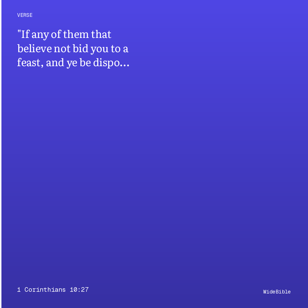 If any of them that believe not bid you to a feast, and ye be disposed to go; whatsoever is set before you, eat, asking no question for conscience sake.
