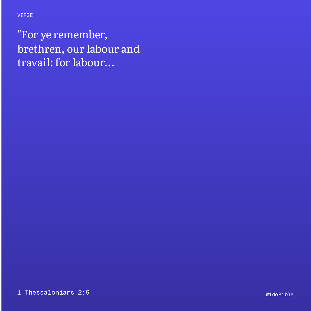 For ye remember, brethren, our labour and travail: for labouring night and day, because we would not be chargeable unto any of you, we preached unto you the gospel of God.