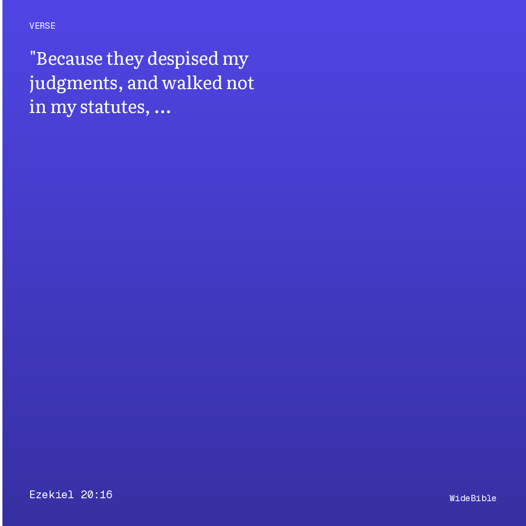 This verse from Ezekiel Chapter 20 connects to 10 cross-references. A history of Israel's repeated rebellion: in Egypt, in the wilderness, and after entering the land they defiled God's sabbaths. For the sake of his name God did not destroy them. A new Exodus is promised through a wilderness experience …