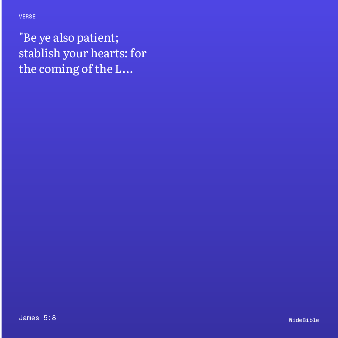 Be ye also patient; stablish your hearts: for the coming of the Lord draweth nigh.