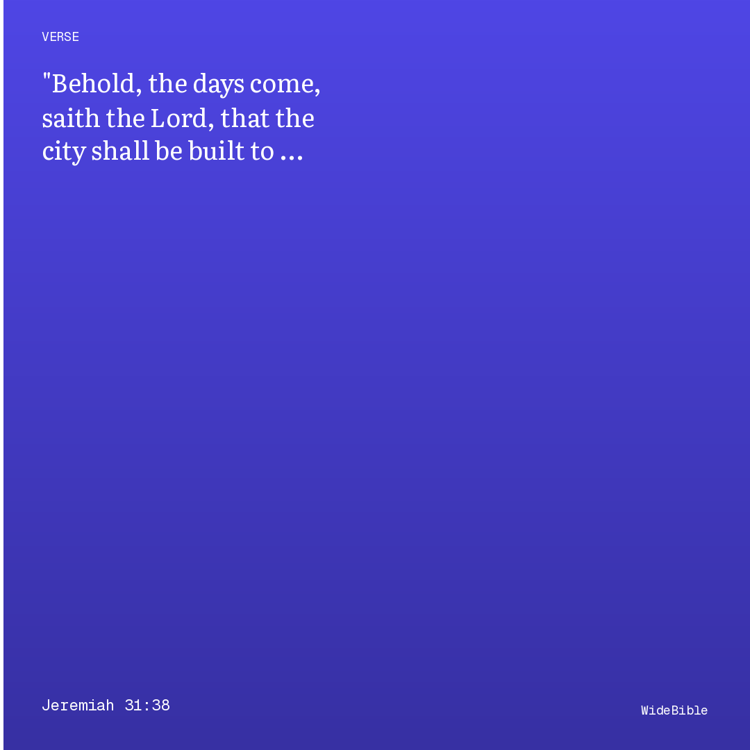 Behold, the days come, saith the Lord, that the city shall be built to the Lord from the tower of Hananeel unto the gate of the corner.