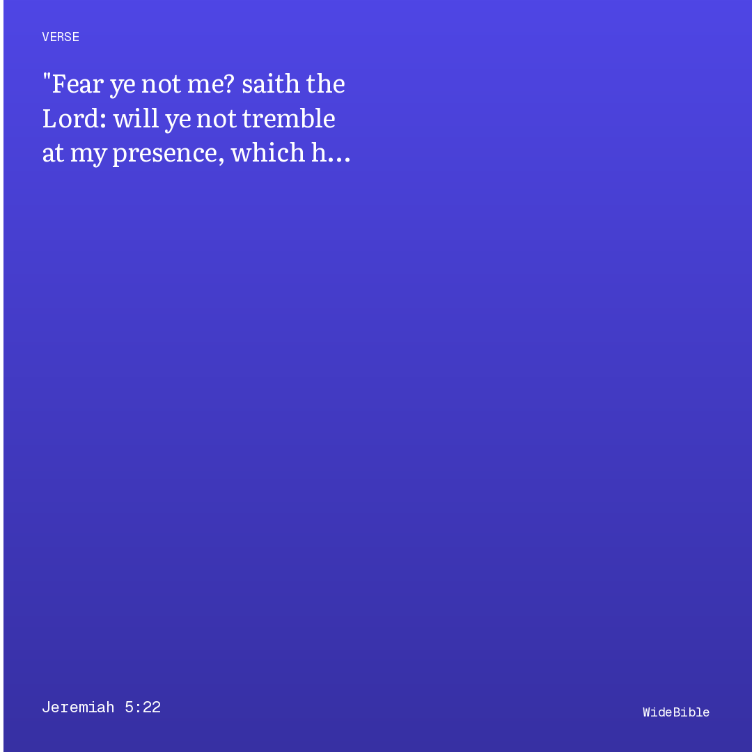 Have you no fear of me? says the Lord; will you not be shaking with fear before me, who have put the sand as a limit for the sea, by an eternal order, so that it may not go past it? and though it is ever in motion, it is not able to have its way; though the sound of its waves is loud, they are not able to go past it.