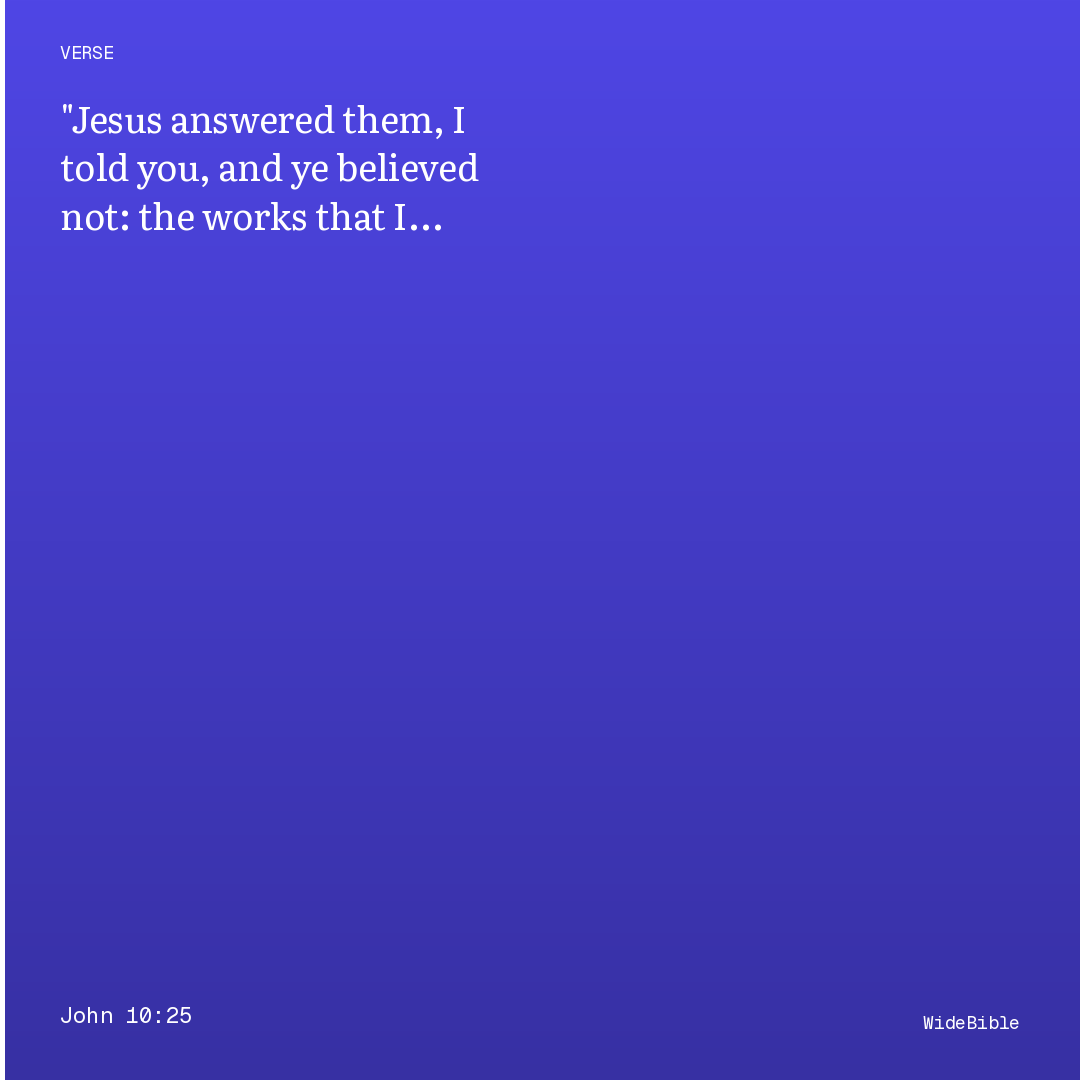 Jesus answered them, I told you, and ye believed not: the works that I do in my Father’s name, they bear witness of me.