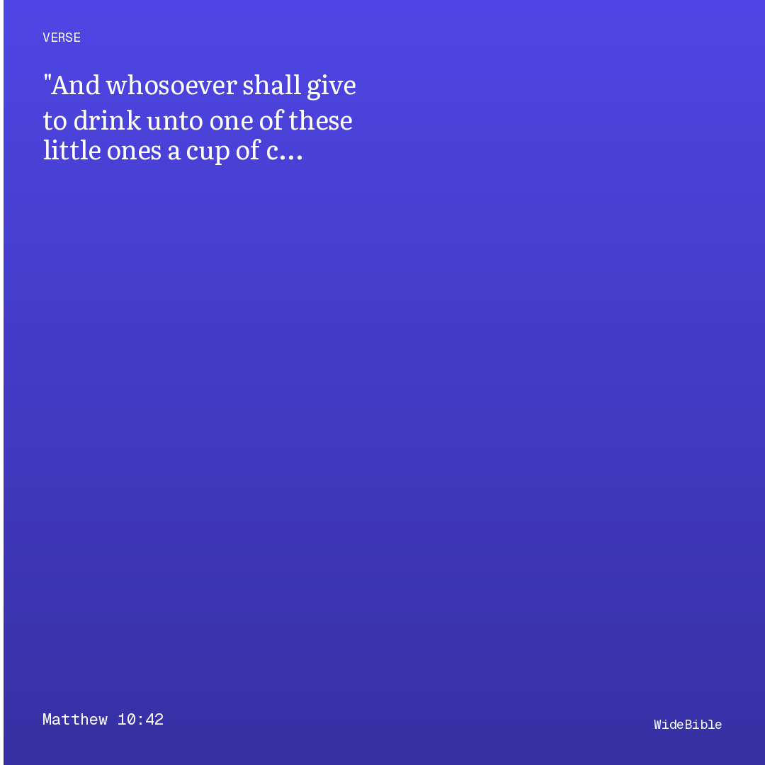 'And whoever gives one of these little ones even a cup of cold water because he is a disciple, truly, I say to you, he will by no means lose his reward' — the closing verse of the Missionary Discourse extends the principle of reception from apostles (verse 40) to 'little ones' — the most socially marginal of Jesus's followers. The cup of cold water as the smallest measurable act of hospitality grounds the eschatological principle: no act of solidarity with the community of Christ is too small to receive divine attention. Matthew 25:31–46's 'least of these' theology develops this same logic into the most comprehensive judgment narrative in the Gospels, identifying Christ himself with the marginalized. The 'reward' language is characteristically Matthean and reflects a gracious reciprocity rather than a commercial transaction: the giver cannot lose what will be given back by the divine who notices even a cup of water.