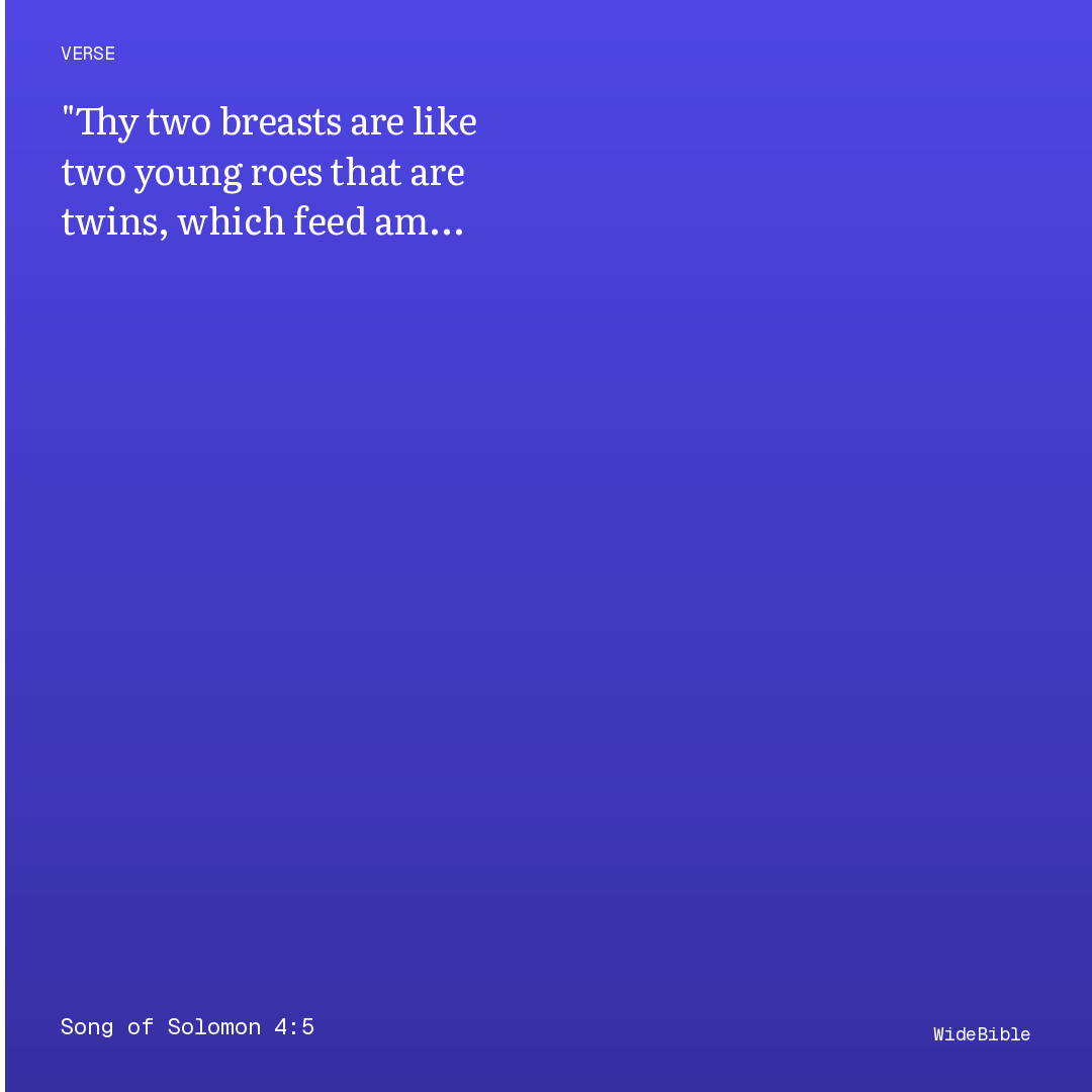 Thy two breasts are like two fawns That are twins of a roe, Which feed among the lilies.