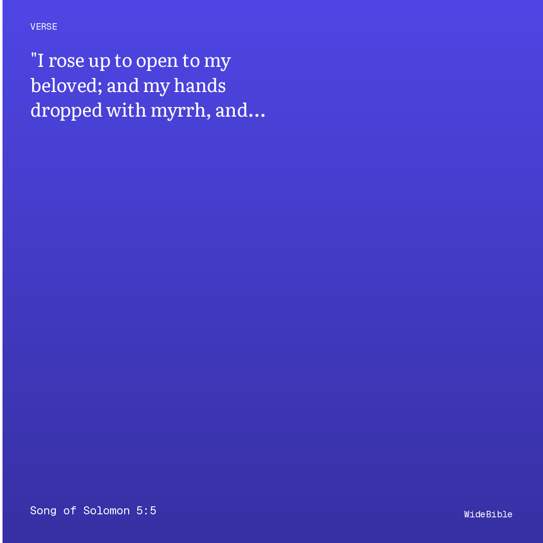 I rose to open to my beloved, And my hands dropped myrrh, Yea, my fingers flowing myrrh, On the handles of the lock.