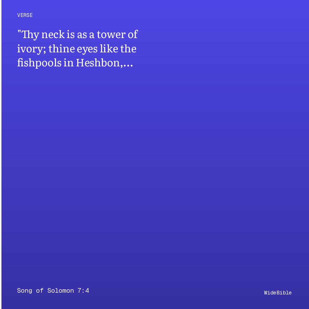 Thy neck is like the tower of ivory; Thine eyes as the pools in Heshbon, By the gate of Bath-rabbim; Thy nose is like the tower of Lebanon Which looketh toward Damascus.