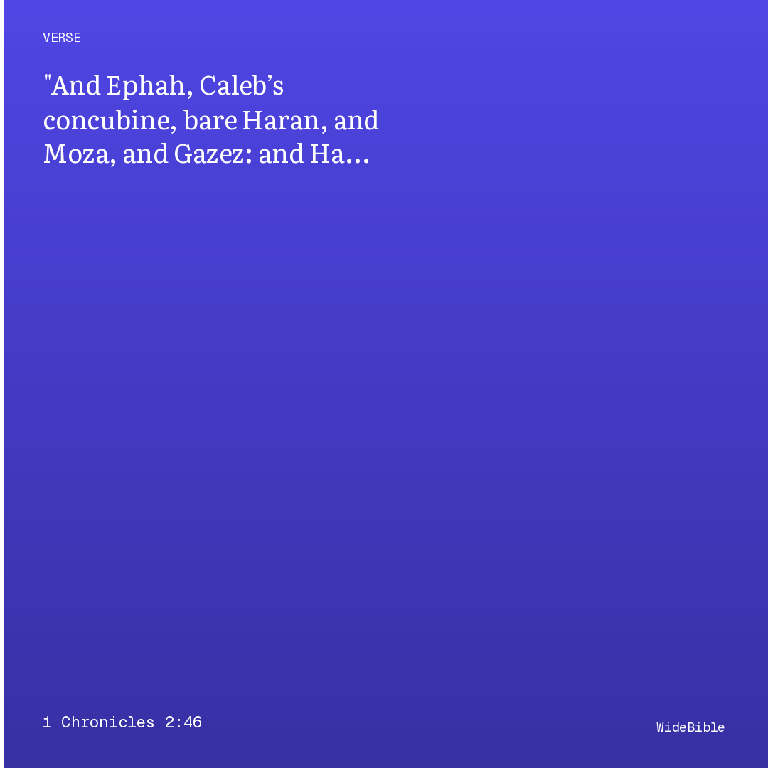 And Ephah, Caleb’s concubine, bare Haran, and Moza, and Gazez; and Haran begat Gazez.