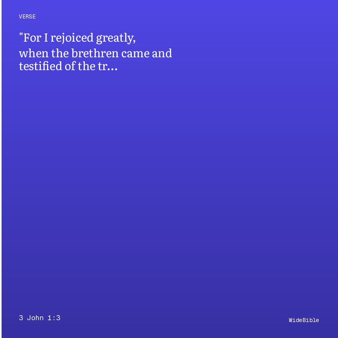 For I rejoiced greatly, when the brethren came and testified of the truth that is in thee, even as thou walkest in the truth.