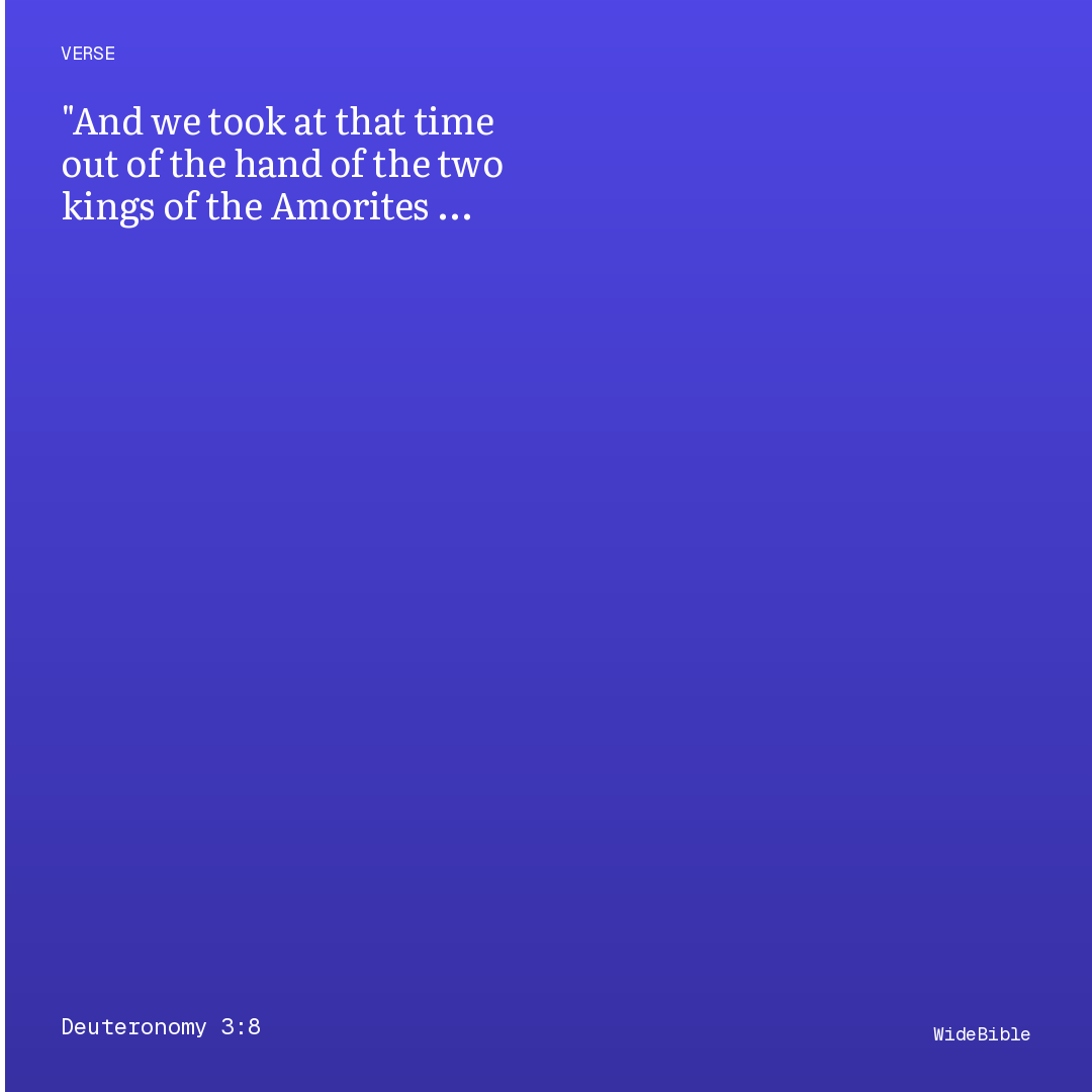 `And we take, at that time, the land out of the hand of the two kings of the Amorite, which is beyond the Jordan, from the brook Arnon unto mount Hermon;