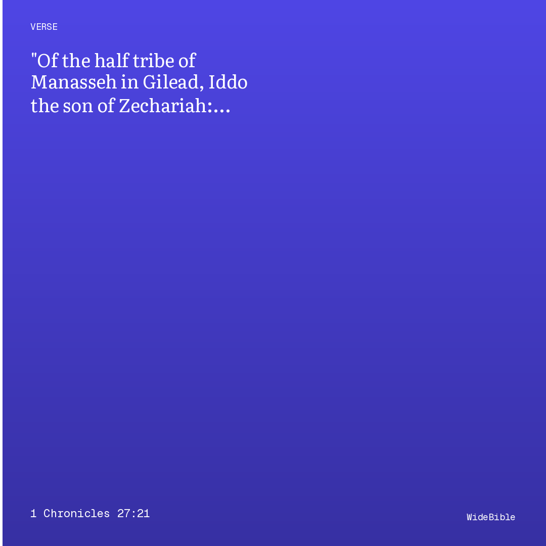 Of the half-tribe of Manasseh in Gilead, Iddo, the son of Zechariah; of Benjamin, Jaasiel, the son of Abner;