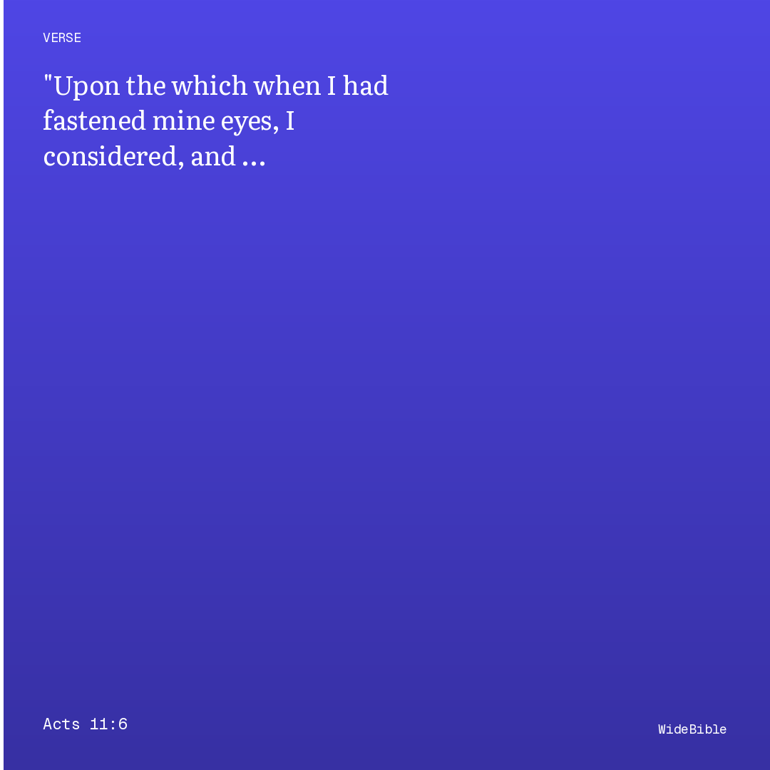 upon which when I had fastened mine eyes, I considered, and saw the fourfooted beasts of the earth and wild beasts and creeping things and birds of the heaven.