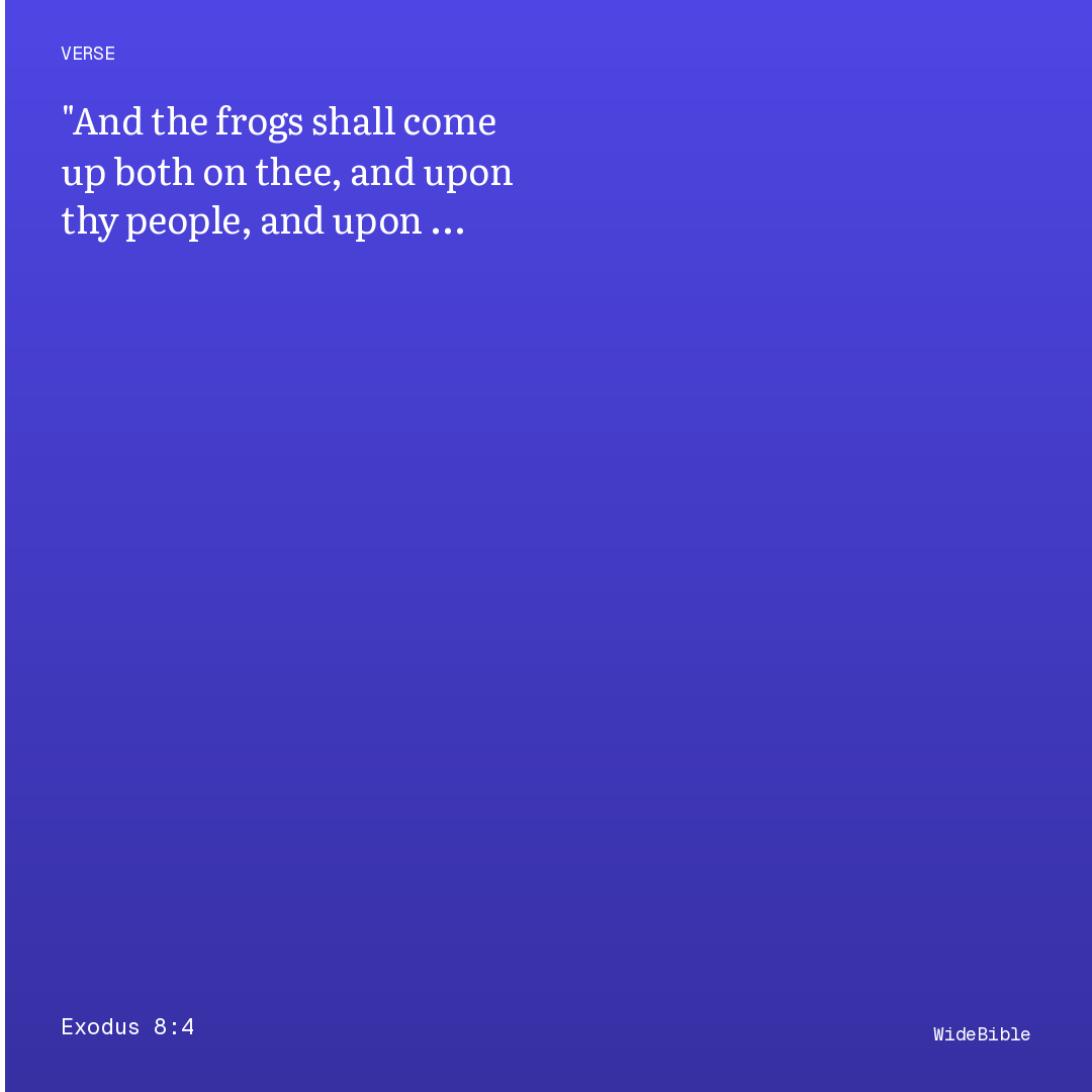 This verse from Exodus Chapter 8 connects to 7 cross-references. The second plague fills Egypt with frogs; Pharaoh asks Moses to pray for their removal but breaks his promise to release Israel. The third plague of gnats comes without warning from Aaron's staff, and even the magicians acknowledge the finger …