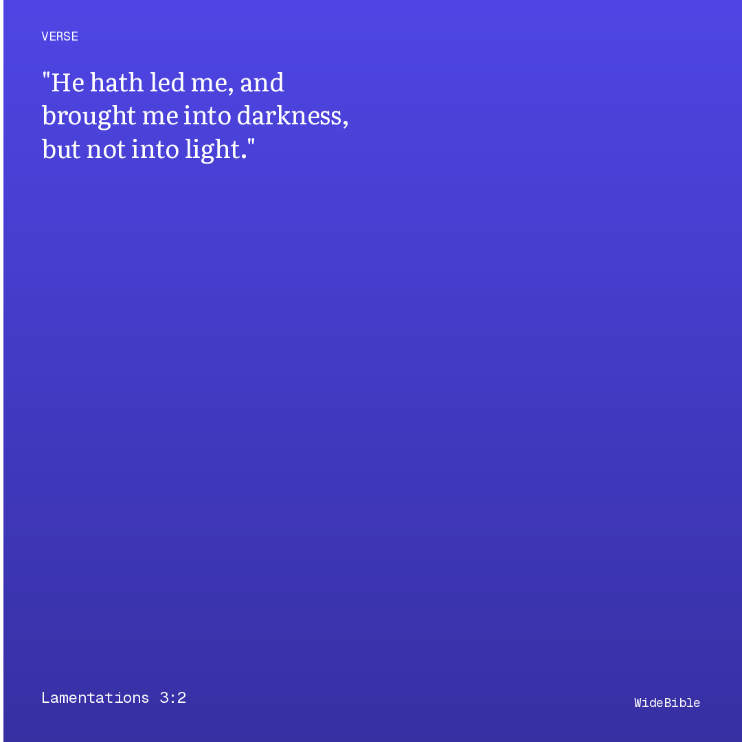 This verse from Lamentations Chapter 3 connects to 10 cross-references. The central and longest lament shifts to first-person male singular. The man has seen affliction under the rod of God's wrath — led into darkness with no light, his flesh wasted, his way blocked with hewn stone. The famous pivot: …