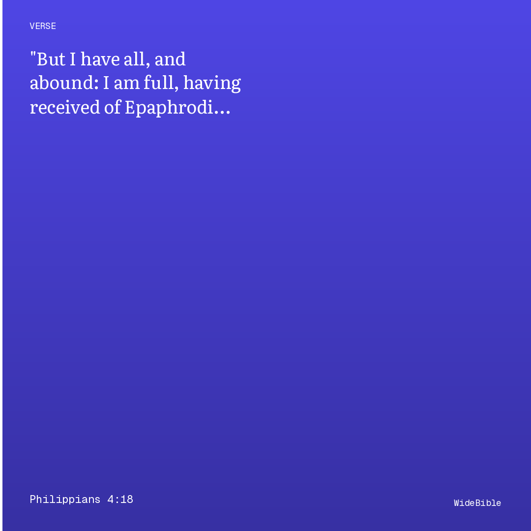 But I have all, and abound: I am full, having received of Epaphroditus the things which were sent from you, an odour of a sweet smell, a sacrifice acceptable, wellpleasing to God.