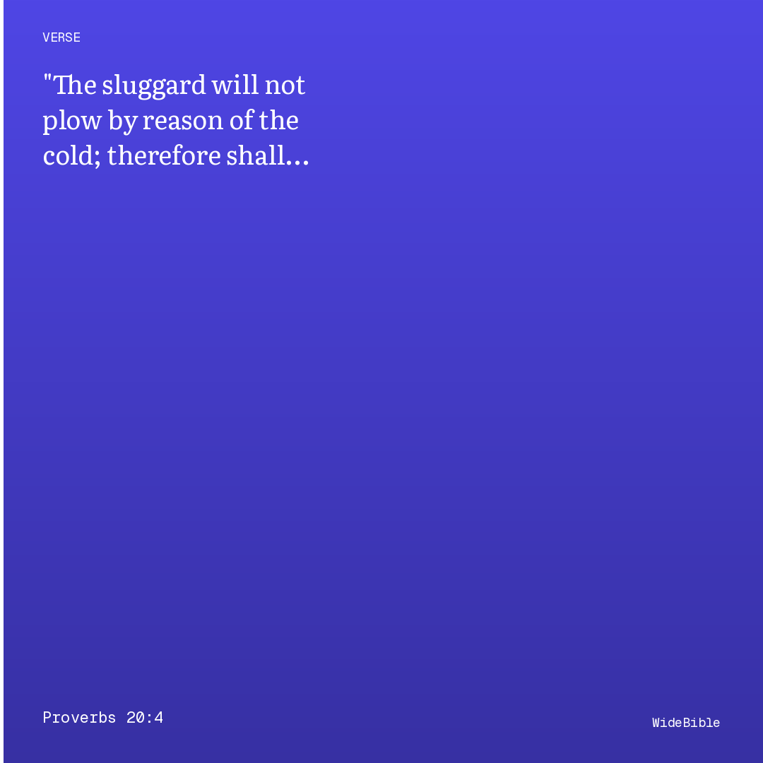 The sluggard will not plow by reason of the cold; therefore shall he beg in harvest, and have nothing.