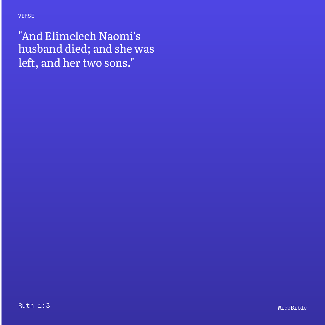 This verse from Ruth Chapter 1 connects to 5 cross-references. Naomi, her husband Elimelech, and their two sons emigrate from Bethlehem to Moab during a famine; the sons marry Moabite women, Orpah and Ruth. After Elimelech and both sons die, Naomi resolves to return to Bethlehem and urges her daughters-in-law …