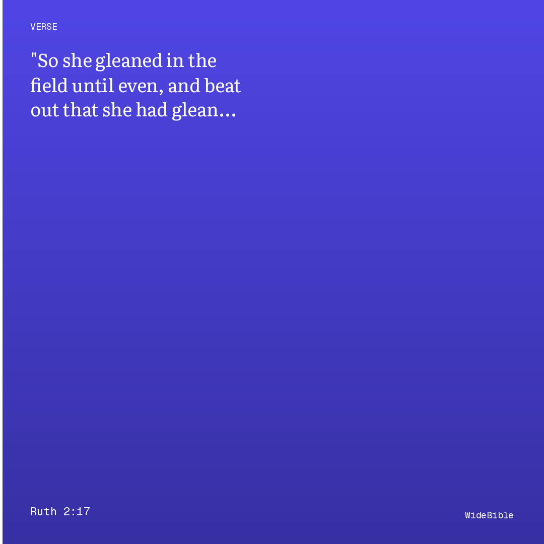 So she gleaned in the field until even; and she beat out that which she had gleaned, and it was about an ephah of barley.
